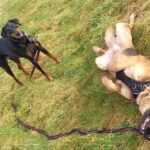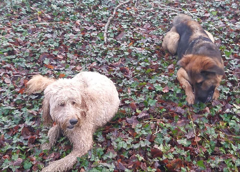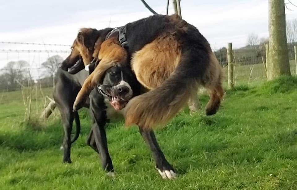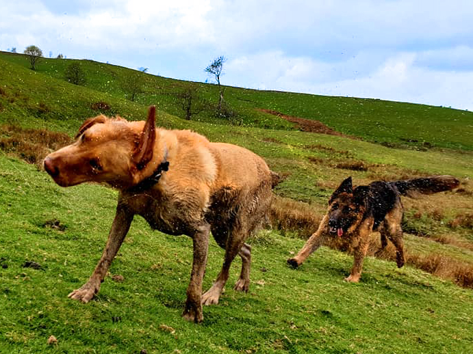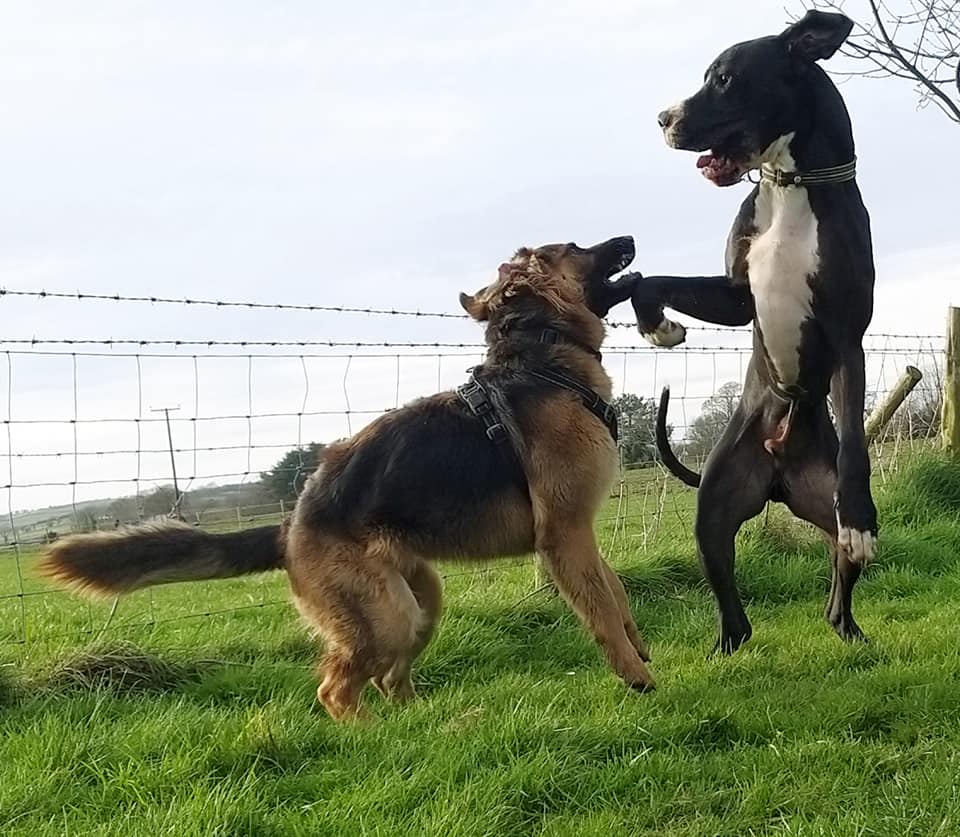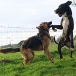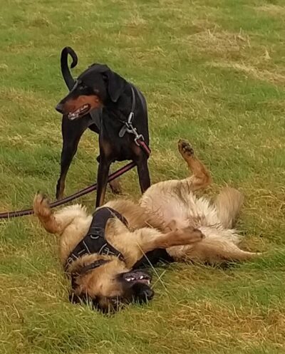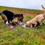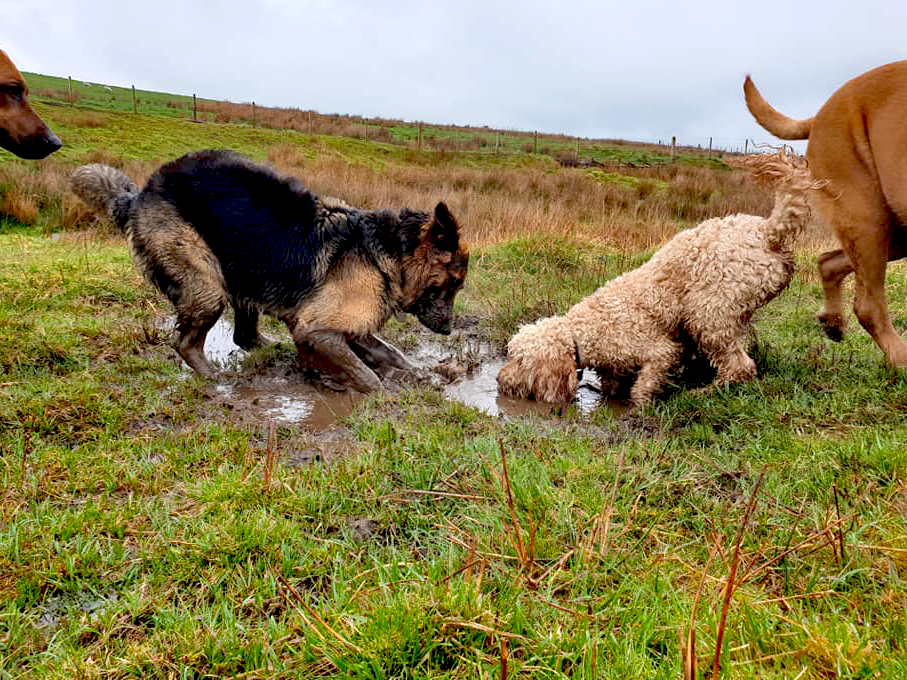 My human thought my doggo friend and me was fighting but we woz only playing doggo wrestling – it’s lots of fun. Sometimes we bite each other for a laugh – it didn’t make my human laugh though – she was barking at me. I think she wanted to join in but she doesn’t like getting muddy like what I do. I usually win at doggo wrestle matches but if I don’t think I’m going to win I show my belly to end the game.