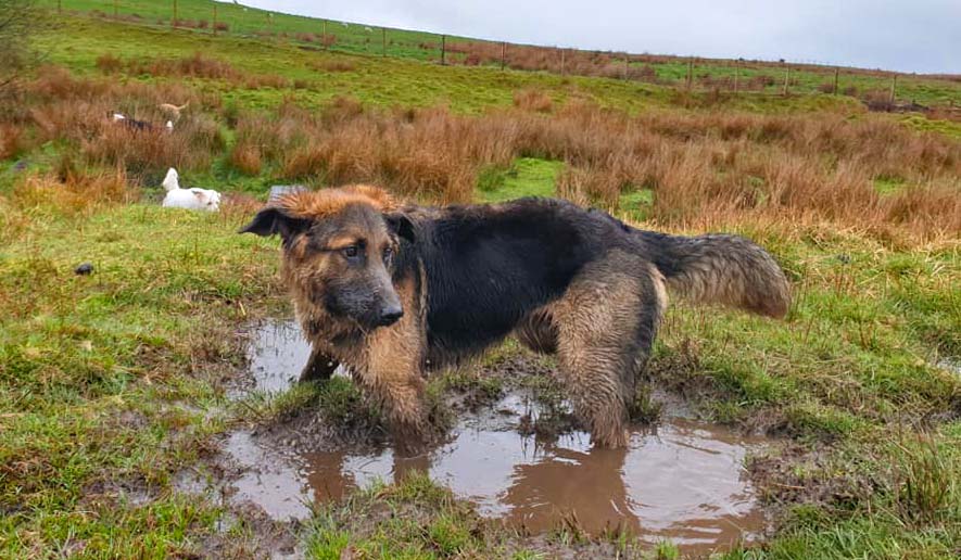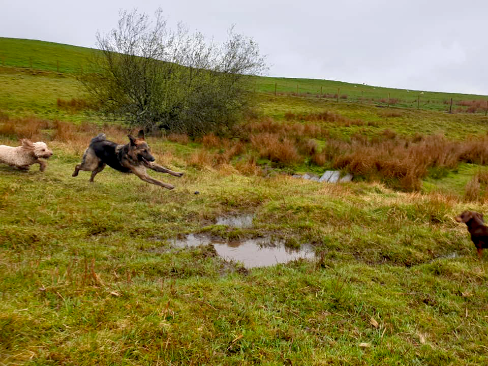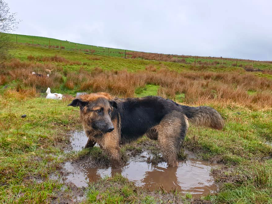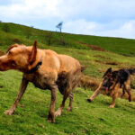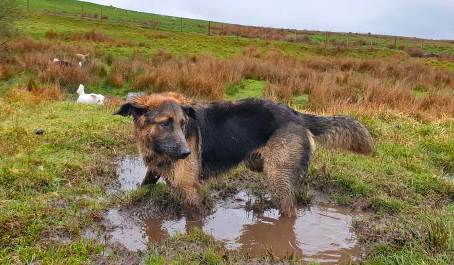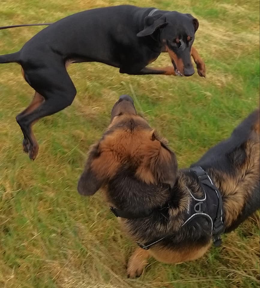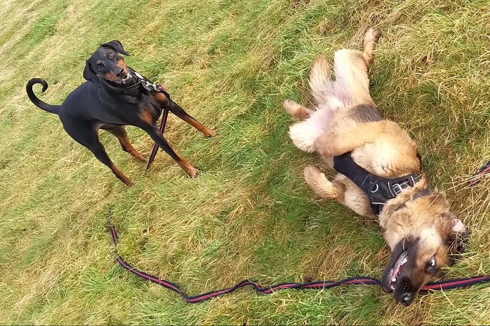 My human thought my doggo friend and me was fighting but we woz only playing doggo wrestling – it’s lots of fun. Sometimes we bite each other for a laugh – it didn’t make my human laugh though – she was barking at me. I think she wanted to join in but she doesn’t like getting muddy like what I do. I usually win at doggo wrestle matches but if I don’t think I’m going to win I show my belly to end the game.